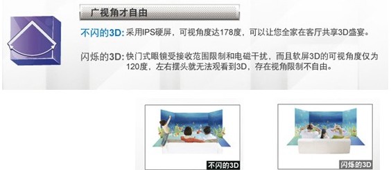 传统的3D电视如果没有不闪技术,看久了很容易头晕,而且伤眼睛。创维37E82RD酷开智能3D电视采用了不闪式3D技术+IPS硬屏组合,不闪的3D技术有效解决了传统3D电视具有的闪烁伤眼、重影头晕、眼镜有辐射、视角受限制等固有的技术难题,同时也是实现全高清画质的3D技术,是目前主流高端3D电视配置的技术。