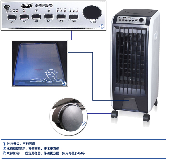 先锋空调扇DG091为单冷型机器,不可制热,适合夏季使用。控制开关,三种风类选择,三档可调,用户可根据自己的实际需要选择。