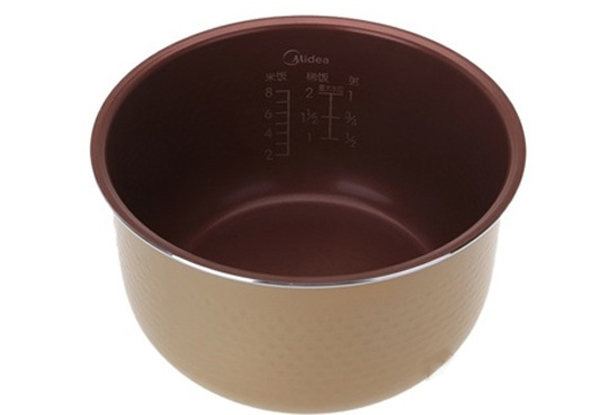 美的FZ4010智能电饭煲采用2.0mm黄晶蜂窝玉铜釜 表面光亮柔滑超级不粘锅耐用,更有效防止细菌滋生 。采用三维立体加热,热量从锅直接传给米饭。