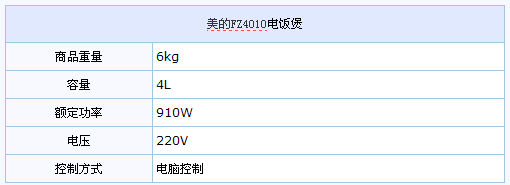 编辑评价:美的FZ4010智能电饭煲,智能化操作方式,使用更方便。喜欢的朋友千万不要错过这款智能电饭煲!