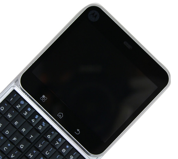 摩托罗拉ME511屏幕下方采用Android系统惯有的菜单键、Home键、返回键,可以让用户在不旋开屏幕情况下操作。