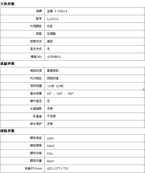 亚都(YADU) LL03-CA 冷风机,双重净化清凉一夏