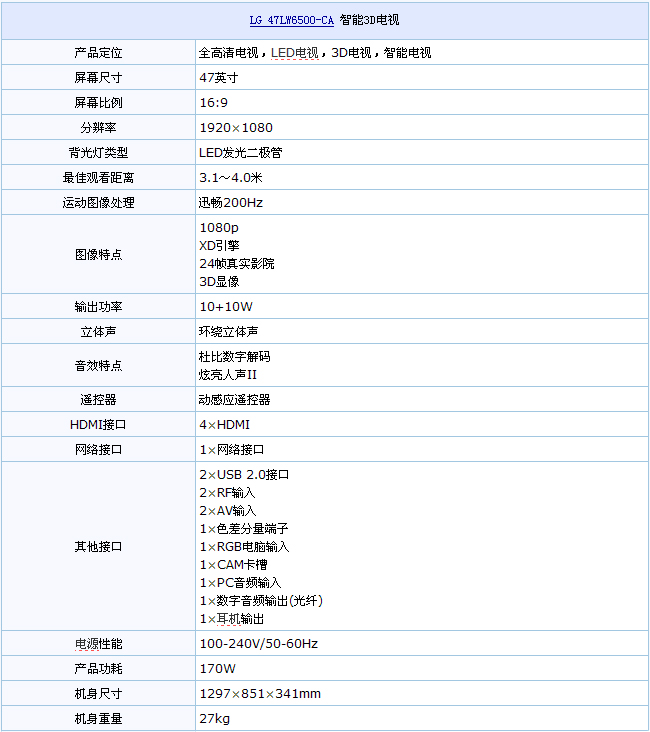 编辑简评: LG LW6500智能3D电视最大卖点在于3D加智能,采用不闪式3D,立体效果相当出色。现在购买送两副3D眼镜和价值199元的LG 手机一部!数量有限先到先得!