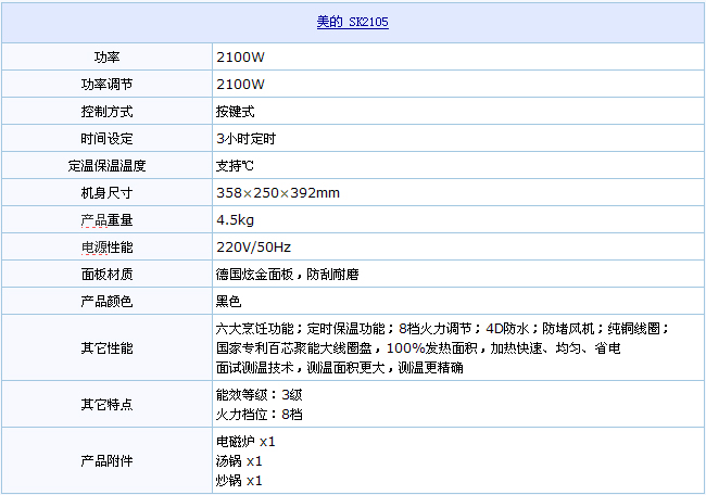 美的 SK2105 电磁炉,厨房小帮手