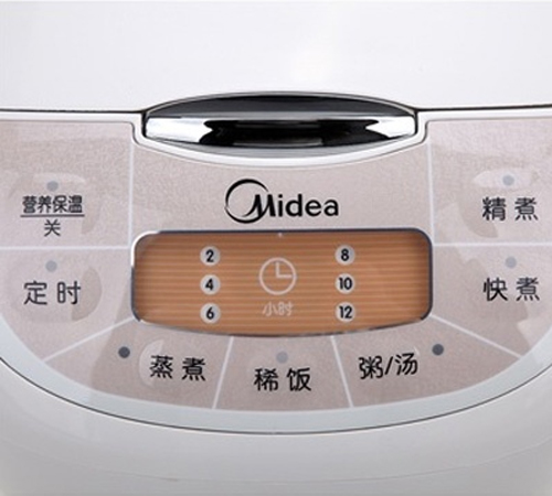 美的FD402电饭煲采用人工智能控制,具有精煮、快煮、稀饭、粥/汤、蒸煮和保温等多种功能,能自动判断米水量大小,以控制加热温度和时间。具有12小时任意定时的功能,煮饭更省心!