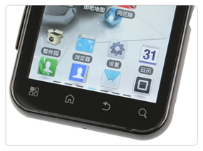 在摩托罗拉ME525+顶部可以看到副摄像头以及摩托罗拉的LOGO,底部则是Android四大天王按键。不过摩托罗拉设计的时候还是预留了比较大的空间,底部可以看到网格设计,并且麦克风就隐藏再里面,这也是摩托罗拉对自己技术上自信的表现。