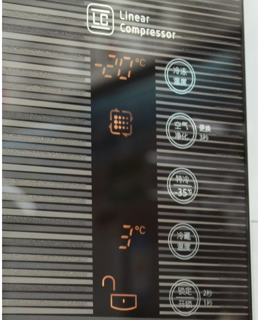 LG GR-M287QGN对开门冰箱采用LED隐藏式触摸显示屏,显示屏与面板的一体化设计,巧妙地隐藏于面板内部,亮度随外界光线自动调节,轻轻触动,即可清晰显示运行状态,操作时便捷易懂。