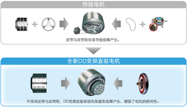 LG WD-N10270D滚筒洗衣机采用DD变频直驱电机,将DD直驱变频电机搭载进滚筒洗衣机里,犹如给它注入了一颗强劲的心脏,除了达到节能的效果,在静音方面也因为少了皮带的摩擦而有出色的控噪效果。电机转动周期比不同,减少故障发生情况,DD变频直驱电机寿,命更长 。