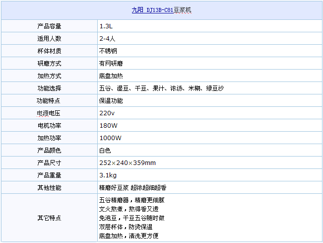 编辑评价:九阳DJ13 B-C81豆浆机采用超微原磨技术,超微粉碎,细化植物蛋白等营养,更易消化和吸收。喜欢的朋友抢完不要错过了。