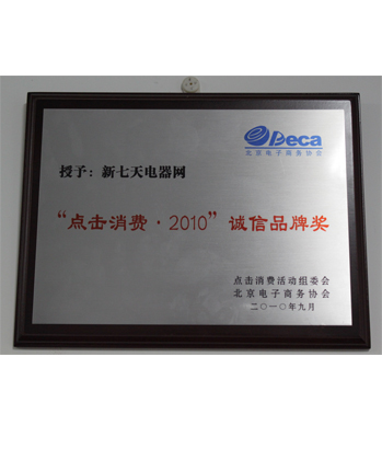 "点击消费,2010"诚信品牌奖